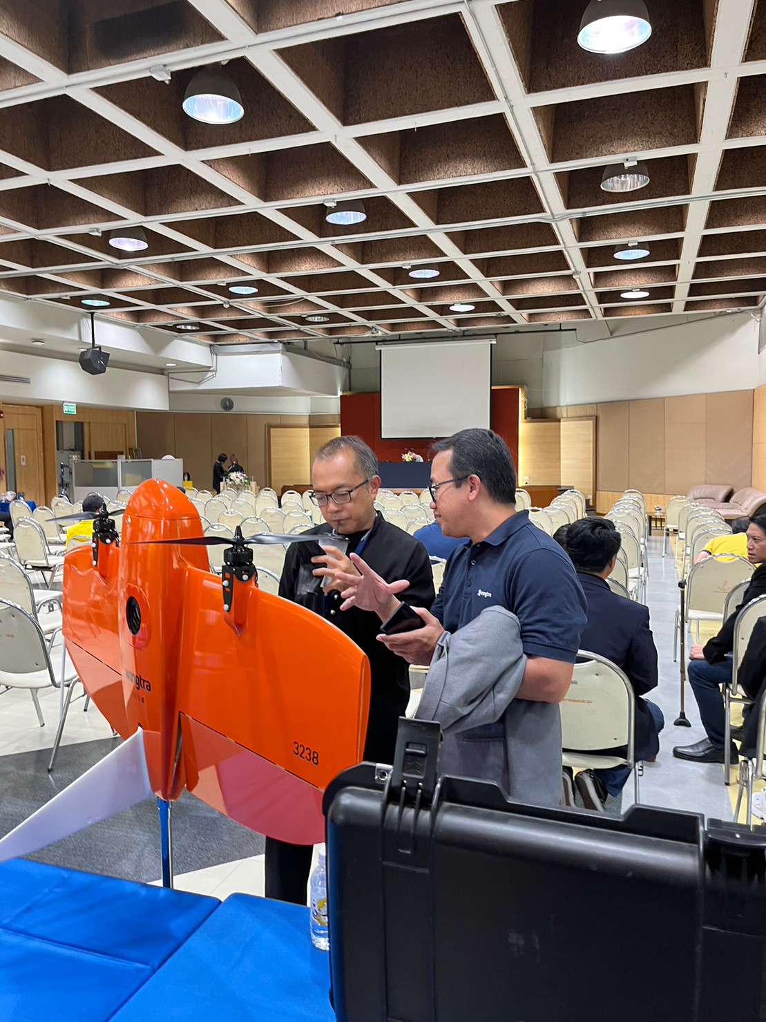 ทางแผนกฯได้นำอากาศยานไร้คนขับ WingtraOne รุ่น Gen ll ไปแสดงในบูท โดยWingtraOne ได้รับการออกแบบสำหรับการทำแผนที่ภาพถ่ายทางอากาศความละเอียดสูงโดยเฉพาะ ซึ่งรุ่น Gen II นี้เป็นรุ่นที่ Upgrade จากรุ่นแรก เช่นมีระบบแผงควบคุมใหม่ที่ช่วยให้ลักษณะการบินนิ่งและลื่นไหลขึ้น มีระบบ Motor และใบพัดรุ่นใหม่ที่แข็งแรงทนทาน สามารถเลือกเปลี่ยน Payload เพื่อให้เหมาะกับลักษณะงานได้ สามารถรองรับกล้อง Oblique และ Multispectral อีกทั้งยังมีการ Upgrade ระบบตรวจสอบการทำงาน (Self-Diagnosis) จึงทำให้ผู้ใช้งานรู้สึกมั่นใจและปลอดภัยในทุกครั้งที่บิน