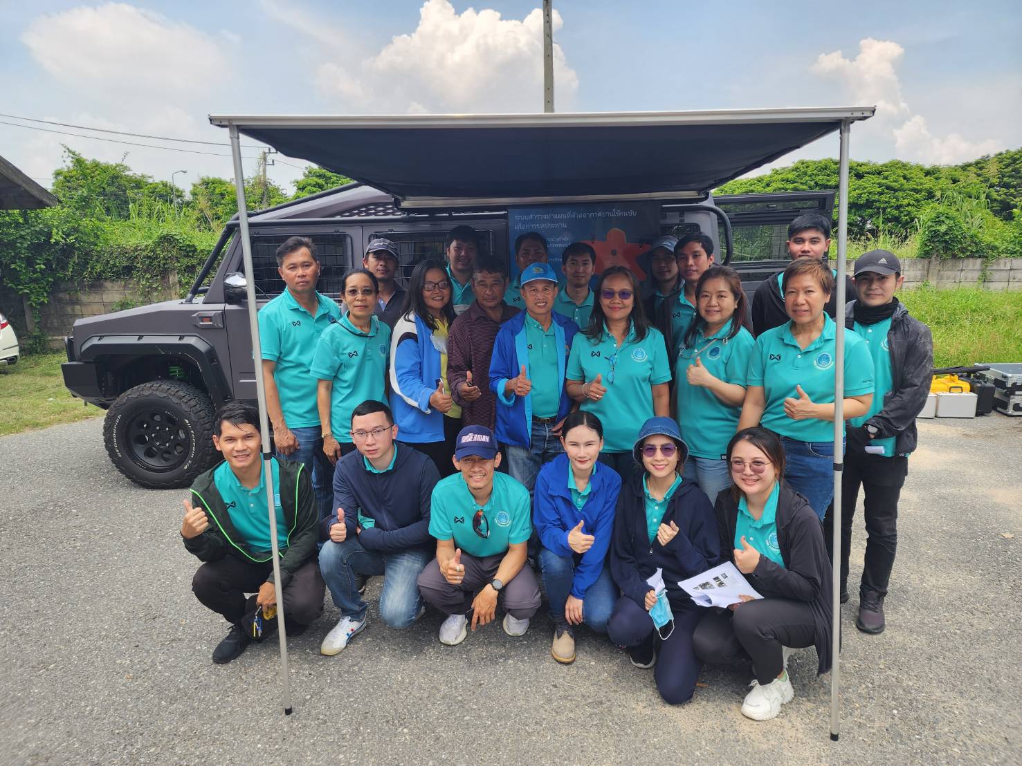 การอบรมเริ่มด้วยการแนะนำรถตรวจการสำหรับปฏิบัติภารกิจ ภายในรถมีเครื่องประมวลผลความเร็วสูงที่ใช้ในการประมวลผลภาพถ่ายทางอากาศที่ได้จากอากาศยานไร้คนขับ พร้อมหน้าจอแสดงผลขนาดใหญ่ติดตั้งภายในตัวรถและสามารถถอดมาติดตั้งนอกตัวรถเพื่อนำเสนอข้อมูลได้ และด้านข้างติดตั้งเต๊นท์มีผ้าใบสามารถกางออกเพื่อใช้ในการปฏิบัติงานและดูข้อมูลภาคสนาม (On-site operation)